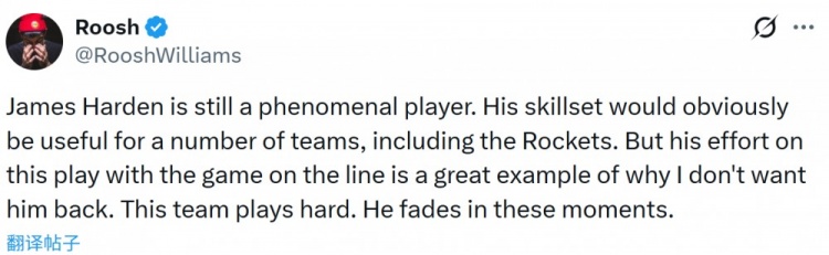 12月13日讯 休斯敦播客主持人@RooshWilliams发推谈及哈登。